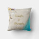 Jeune marié et jeune mariée sur la plage de l'océan tropical, Coussins décoratifs pour mariage. Vous pouvez ajouter vos propres noms et date.