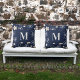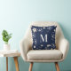 Coussin Marine bleu crème fleur motif rétro