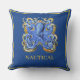 Bateau ou Beach House Octopus Bleu Élégant lancer oreiller. Un élégant oreiller bleu chic, parfait pour votre décor de bateau de luxe ou maison de plage. Changez le nom de votre propre nom ou celui des bateaux.