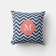 Coussin Marine Coral bleu Zigzag Motif Monogramme