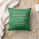 Cet oreiller de lancer chrétien a le verset biblique Matthieu 11:28 pour aider à réconforter et donner des encouragements à ceux qui cherchent la force dans une police élégante contre un arrière - plan vert.