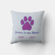 Un joli coussin pour se souvenir de votre animal de compagnie bien-aimé, le nom peut être changé et les couleurs de l'empreinte de patte peut également être changé en allant dans l'édition.