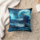 Jeter l'oreiller avec l'image d'une sirène plongeant dans les vagues contre une pleine lune sur le devant et des lignes d'un poème par e.e. cummings sur le dos.