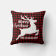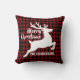 Coussin Merry Christmas Deer Red & Black Plaid Custom Name