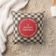 Personnalisez avec votre nom ou celui de votre famille. Coussin de vacances dans le traditionnel écossais écossais de rouge et vert est une façon si amusante de décorer pour les vacances. Couleurs de Noël dans un plaid en diagonale avec un cercle de paroles joyeuses, joyeuses et joyeuses. Centré avec votre nom ou message personnalisé.