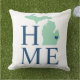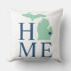 Un coussin extérieur Michigan Maison présentant la silhouette de l'état en vert menthe avec un petit cœur marquant votre ville natale. Le lettrage Maison Marine sur un fond blanc propre crée un design frais et classique de fierté de l'état, avec des rayures de menthe et de blanc coordonnées sur l'envers. Le cœur peut être repositionné sur votre ville spécifique du Michigan. Un accent net pour les espaces de vie extérieurs.