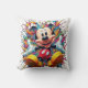Un design d'oreiller à lancer dynamique et ludique avec Mickey Mouse dans une explosion colorée de peinture. Le personnage emblématique de Disney est entouré d'une composition chaotique et dynamique d'éclaboussures, créant un sentiment de joie et d'excitation.