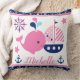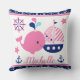 Coussin Mignonne baleine rose marine et Motif Ancres