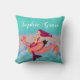 Coussin Mignonne fille mauve sirène et Flamant rose rose
