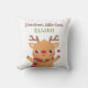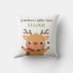 Un joli coussin avec la légende humoristique "Le petit cerf de grand-mère" avec une illustration d'un adorable renne portant une écharpe rayée rouge et verte. Personnalisez avec le nom du petit-enfant pour créer une pièce unique pour la chambre du petit.