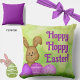 Faites de la saison ovostra magique avec ce mignon et coloré oreiller de Pâques avec un lapin lapin lapin et des oeufs mauves douces et souriants sur un arrière - plan vert herbacé. Texte sur le coussin : "Pâques Hoppy Hoppy !" mais peut être customisé avec un message de votre choix. Un charmant accent printanier pour les chambres pour enfants ou les jardins, ce coussin ne manquera pas d'égayer votre maison ! Le dos coussin est violet.