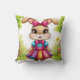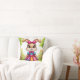 Magnifique personnage de lapin de dessin animé portant une robe multicolore, installé dans un jardin fleuri extérieur animé, parfait pour les concepts de chaleur, de jeu et de la nature.