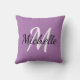 Jetez l'oreiller avec un arrière - plan violet et blanc monogramme personnalisé première initiale et prénom.