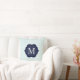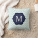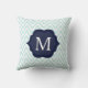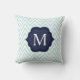 Coussin Mint bleu et blanc Chevron Navy Monogram Design