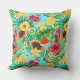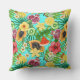 Coussin Mix-fruit tropical, fleurs et feuilles en bleu