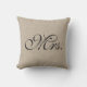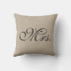 Un coussin mignon pour Mme ou Mme - à-soyez sur un arrière - plan de toile de jute de faux ; ainsi vous avez le regard rustique de la toile de jute et le confort doux du coton. M. coordonné coussin est également disponible.