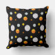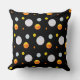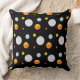 Beau coussin décoratif avec de beaux points polka à la mode sur fond noir. Les beaux points polka ressemblent à des planètes dans un univers. Conception pour adultes ainsi que pour étudiants ou enfants.