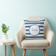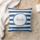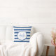 Un carré à la mode, des bandes de bonbons bleu et blanc, jette l'oreiller. Personnalisez ce motif moderne en ajoutant votre nom et votre initiale monogrammée. Ce design monogramme élégant fait partie de la collection de couleurs d'été Classic Blue Stripes.