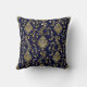 Ce coussin unique et séduisant présente un motif de damas doré tourbillonnant complexe sur un arrière - plan bleu profond. Les deux côtés du coussin ont la même image. Élégant !