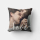 Cet adorable coussin présente le mot "amour" dans un script blanc moderne avec la photo du couple affichée derrière. Choisissez la couleur arrière - plan de l'arrière du coussin pour correspondre à votre photo ou à votre décor.