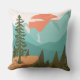 Introducing our Modern Abstract Forest, Mountains, and Sunrise Outdoor Pillow. Featuring landscape illustration in vintage style. Suitable for as a gift for nature, camping, and hiking enthusiasts.