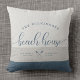 Coussin Modern Beach House Nom de famille Brève Script Ble