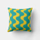 Coussin Moderne Abstrait Ondulé Sarcelle et Jaune Rétro