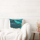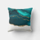 Une coussin de style abstrait. Illustration de la pierre d'agate turquoise avec des couches de nuances variées. Un faux ruban de parties scintillant d'or court entre les couches de couleur. Design moderne et élégant.