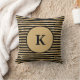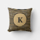 Coussin jeté monogrammé rayé noir et or.