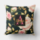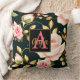 Coussin Moderne Elégant rose Roses Feuilles or Monogramme