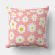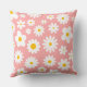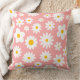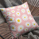 Un oreiller Whimsical moderne à lancer avec des marguerites blanches éparpillées avec des centres d'or tournesol sur un arrière - plan rose doux. Contact pour assistance à la customisée ou à la personnalisation.