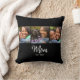 Mom Established Modern Script Black 3 Photo Throw Pillow