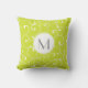 Un design moderne fantaisiste avec un motif blanc contre un arrière - plan vert citron. Customisez le monogramme avec votre initiale ou votre nom en cliquant sur le bouton "Customiser". Vous pouvez modifier les polices et la couleur des polices. L'envers du coussin est moins le monogramme et le médaillon pour la polyvalence dans l'affichage du coussin de deux façons différentes.