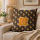 Bring happy hour style home with this monogram Aperol Spritz cocktail throw pillow. Featuring a playful pattern of bright orange spritz drinks on a dark background with a custom initial centerpiece, this decorative pillow adds bold personality to sofas, patio seating, bar carts, kitchens, and entertaining spaces.