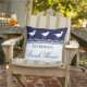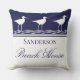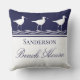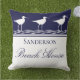 Beach house bleu marine Sandpipers Jeter Oreiller, Design nautique parfait pour la vie côtière, décor de lac, décoration de rivière, et plus... Design par Sandy Closs.
