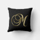 Monogramme M, script élégant, couleur or sur arrière - plan noir.