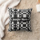 Coussin Monogramme à damiers noir et blanc imprimé floral