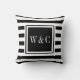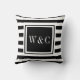 Coussin Monogramme à rayures noir et blanc tendance