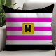 Coussin Monogramme à rayures roses gras