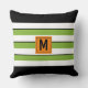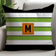 Donnez un coup de frais à vos espaces de vie intérieurs ou extérieurs avec cet oreiller contemporain qui présente un blocage de couleurs moderne, des rayures audacieuses et une initiale personnalisable. Les couleurs vives aux tons ensoleillés de vert, d'orange et de noir ajouteront une touche de plaisir à votre salon, véranda ou patio. Fait un cadeau de pendaison de crémaillère parfait pour les nouveaux propriétaires.