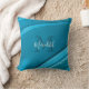 Ce bel oreiller à jetons présente un design tourbillonnant abstrait dans des tons turquoises branchés. Personnalisez-le avec nom en calligraphie blanche et monogramme en police turquoise foncée correspondante.
