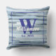 Coussin Monogramme aquarelle rayures bleu gris nautical