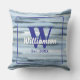 Oreiller carré personnalisable avec monogramme, lettre initiale, nom de famille et date, année d'établissement. Idéal comme cadeau de crémaillère, nouvelle maison, anniversaire ou pour des jeunes mariés. Nuances monochromes pastel neutres en bleu, marine, sarcelle, gris, blanc, rappelant le thème nautique, maritime, marin tant apprécié, style esthétique de maison de lac, de maison de plage. Motif original à rayures aquarelles, peint à la main. Pour votre décoration intérieure, ou comme cadeau original, créatif, attentionné et utile. Il est facile à assortir et sera sûrement apprécié et admiré.