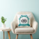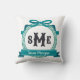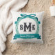 Coussin Monogramme au nœud à clé grecque sarcelle foncé