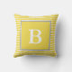 Ce coussin jaune a un motif rayé à l'arrière-plan. Il y a une initiale blanche personnalisable au centre d'un carré jaune. Personnalisez ce carreau avec le monogramme du destinataire.