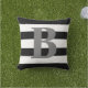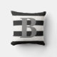 Conçu avec les rayures noires et blanches audacieuses sur l'avant et le dos du coussin et de la partie antérieure a la grande lettre grise de monogramme au centre.