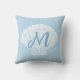 Un monogramme bleu océan lance l'oreiller avec un accent coquillage blanc en détresse. Parfait pour votre décoration sur le thème de la plage côtière ou mariage !