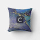 Coussin Monogramme d'art Turquoise et liquide d'or bleu vi