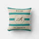 coussin de déco rayé beige et turquoise, inscrivez votre nom et prénom de famille sur l'avant et l'arrière en utilisant la personnalisation de ce champ modèle sur la droite. Autres styles disponibles.