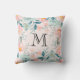 Coussin avec une élégante bordure fleurie. Fleurs et feuilles en rose et vert.